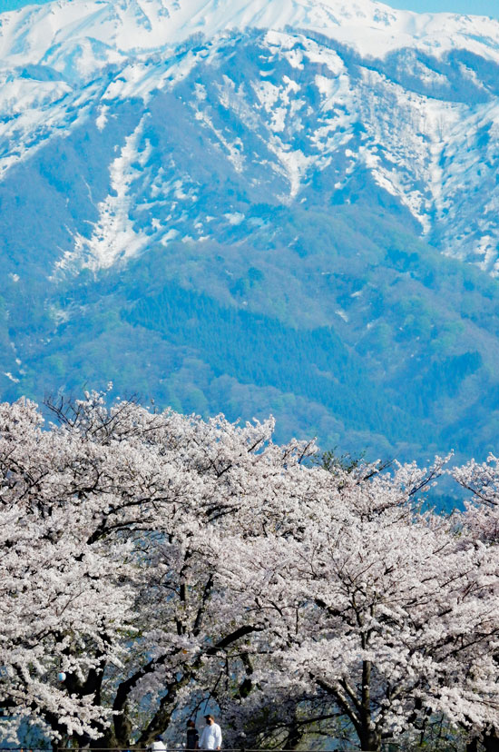 | 中央 白馬岳(右の旭岳より低く見えのは奥に位置するため) |